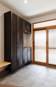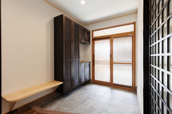玄関とホールを広く余白を大切にした数寄屋造りの意匠を取り入れた間取り