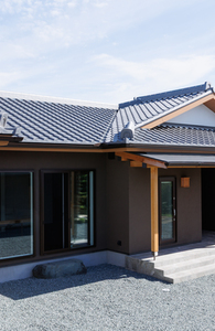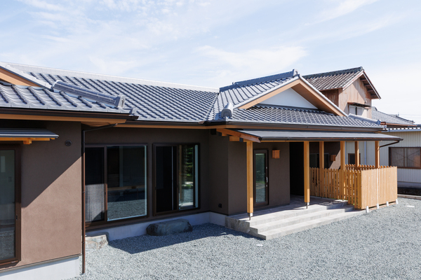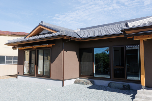 一文字瓦屋根が目を引くモダンな2世帯住宅 数寄屋風平屋建て