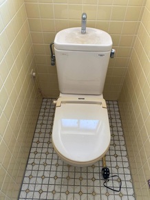 長年使ったとトイレが故障したのでトイレ本体の交換と床タイルから無垢板へ変更